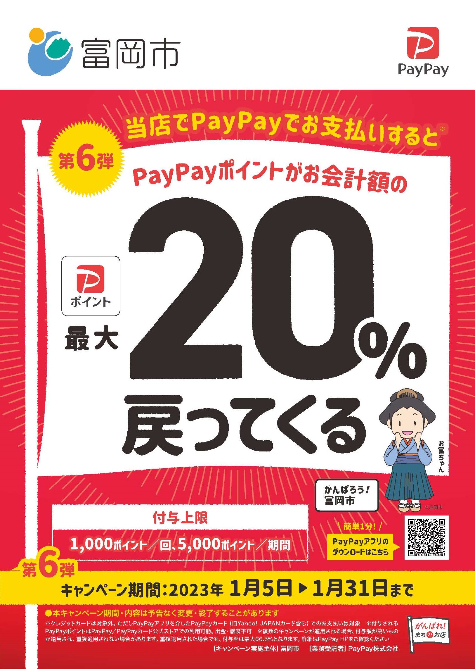 2023年1月5日から1月31日まで、PayPay残高で決済すると、決済金額の最大20%のポイントが還元されます。
